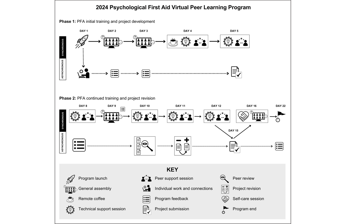 Peer Support Sessions: Synchronized sessions combining technical support (often provided by peers), experience-sharing, and PFA skills development on specific topics. These sessions provided opportunities to practice, problem-solve, and support each step of the case study development process.
