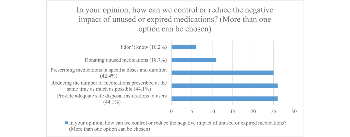 | In your opinion, how can we control or reduce the negative impact of unused or expired medications? (More than one option can be chosen) | I don’t know | ||